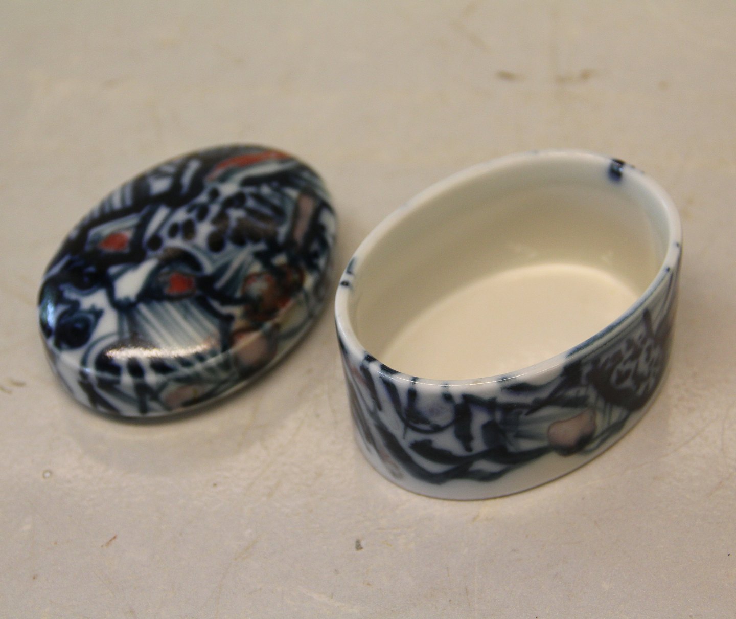 Beskrivelse: 2002 Kgl Bonbon skål med låg 6 x 8 cm Sigeneret Sten 2002 Pilleæske Royal Copenhagen stentøj I fin og hel stand