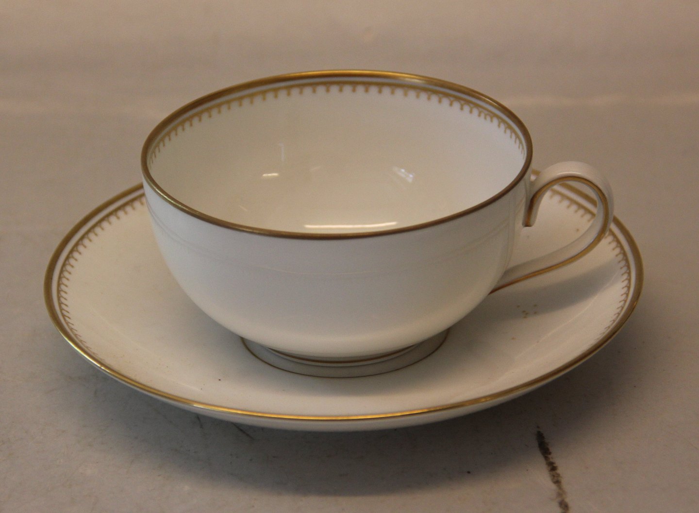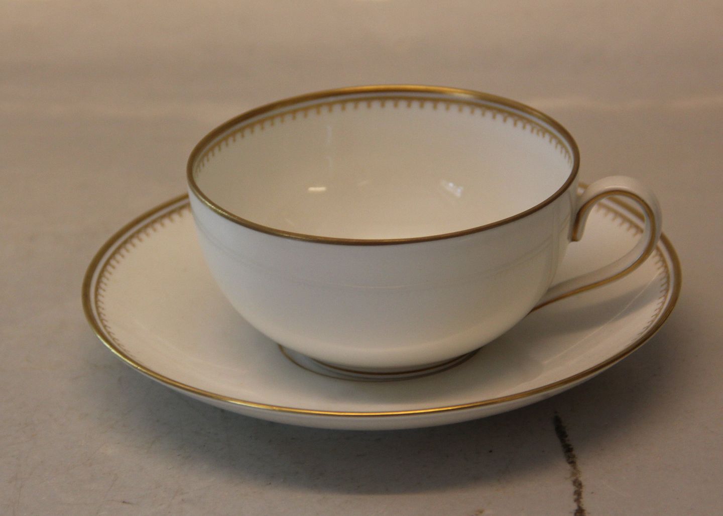 108 a Lille Tekop 4,7 x 9 cm og underkop 14.2 cm B&G Menuet: Hvidt porcelæn, takket guldkant, hvid, form 601