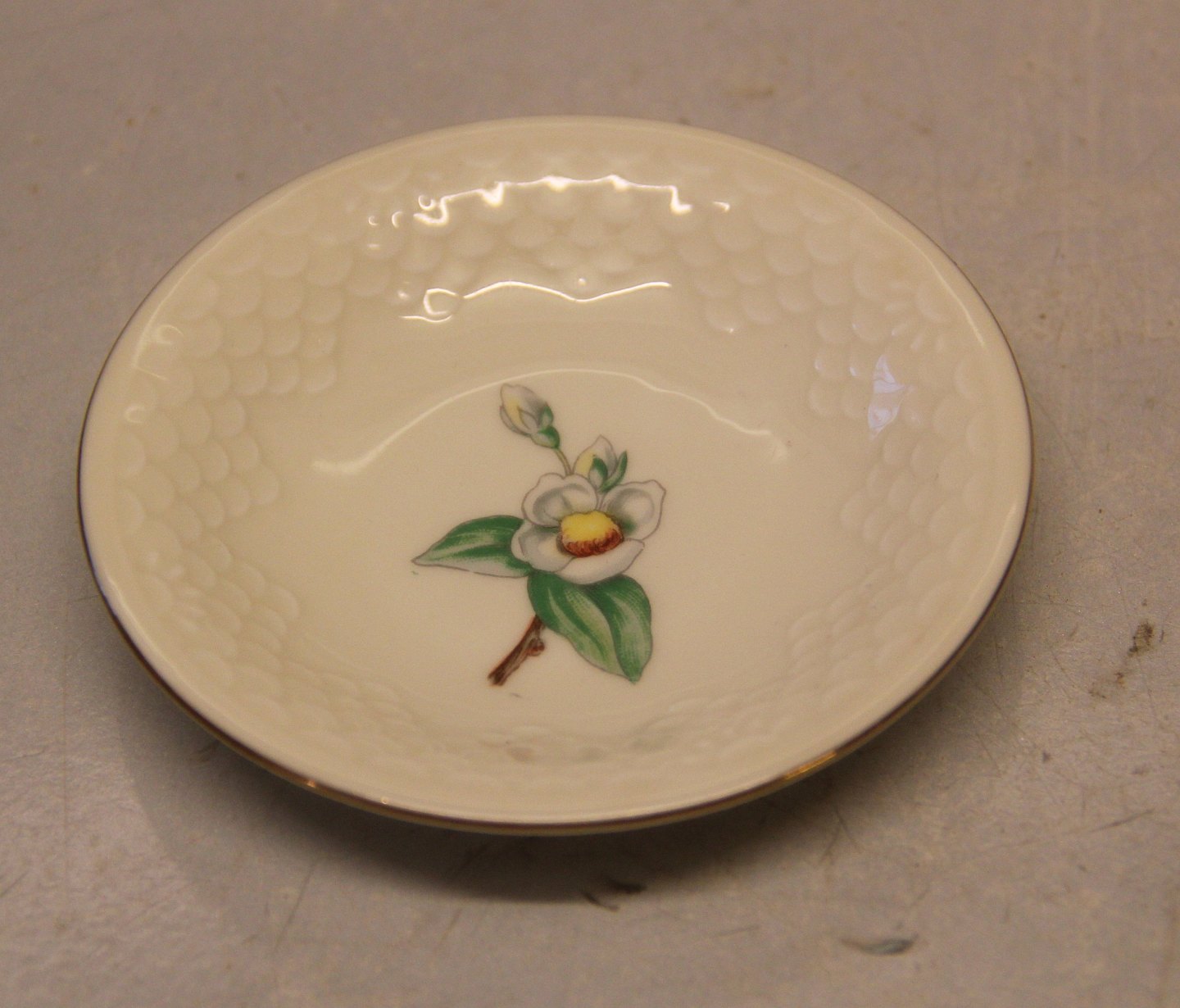 030 Smør kuvert, rund 11 cm (330) Bing & Grøndahl Heimdahl - kremefarvet porcelæn med guldkant dekoreret med Jasmin - ikke at forveksle med Æbleblomst I fin og hel stand