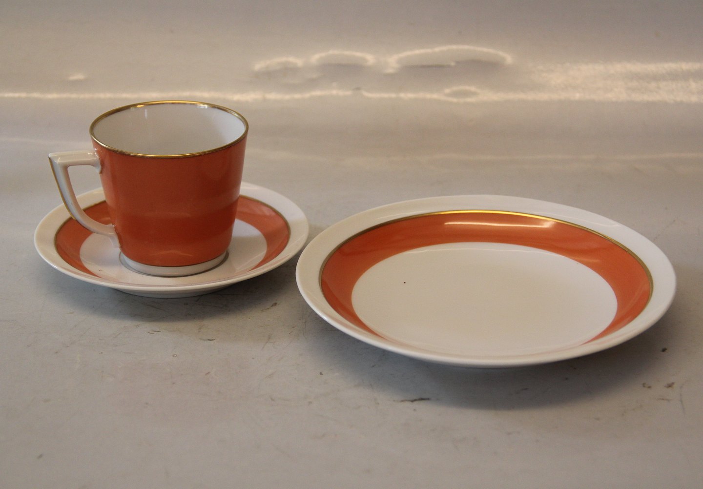 790-9482 Dish 27 cm Royal Copenhagen Jægersborg Orange Pastel with gold. Design Thorkild Olsen ca 1938. In mint and nice condition