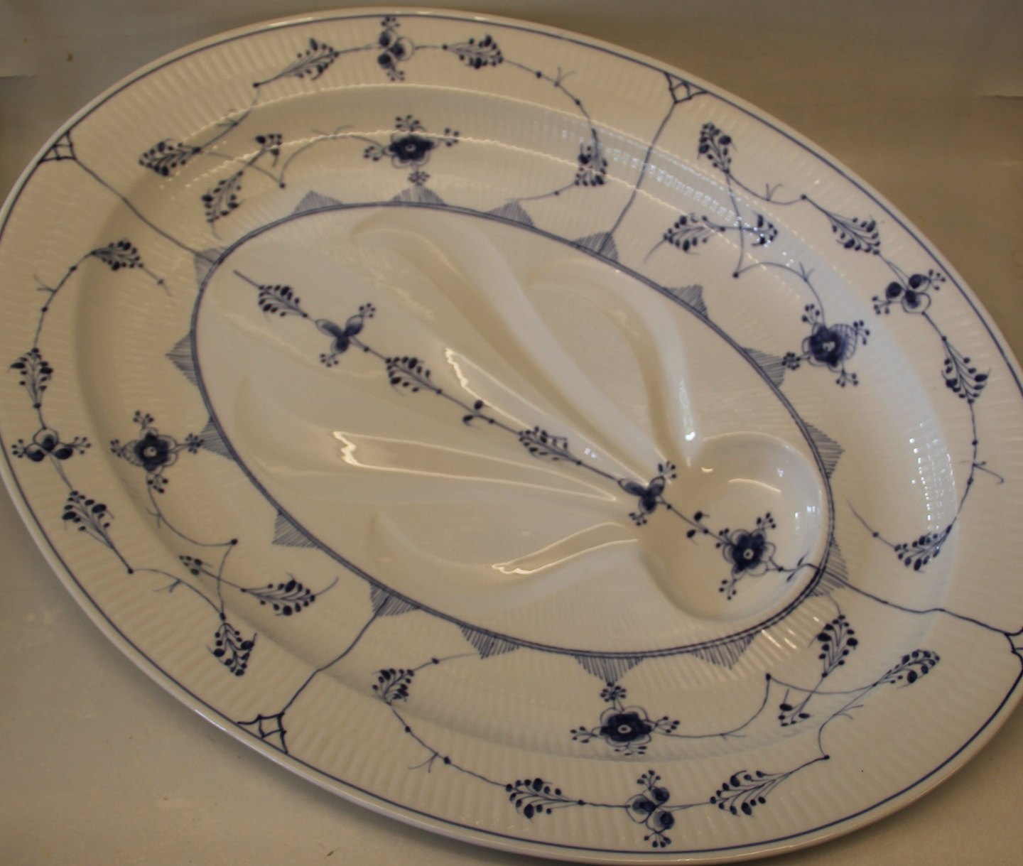 114-1 Fiskefad, ovalt med blæksprutte i relief 54 x 40 cm før 1923 Royal Copenhagen Musselmalet riflet . 2. sort. Muselmalet I fin stand - lille afslag på undersiden . Passer godt sammen med andre blåmalede spise- og kaffestel