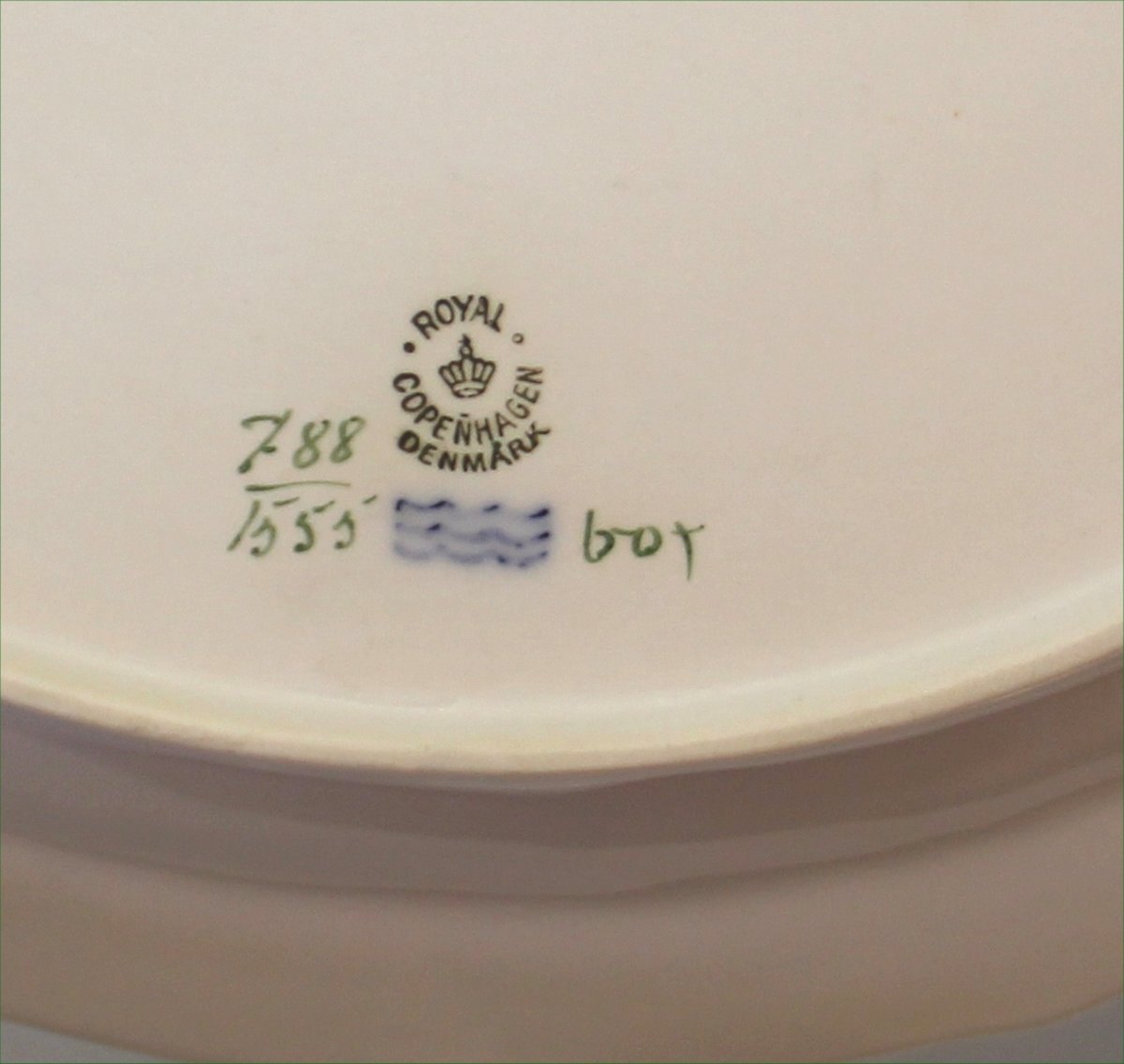1555-788 Ovalt fad 31,5 cm Serveringsfad - Stegefad Svejfet # 788 Kongelig Dansk Svejfet Porcelæn - hvidt med beige (Chamois Fond) kant og guld