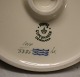 Kgl. 1010 Fensmark : Cremefarvet glasur, koralrød blomst med grønne blade, grønt bånd og guldfilet. Dekorationen med Rød Arve, populært kaldet "Grine til Middag" Det latinske navn: Ana Gallis Arvensis. Design Thorkild Olsen før 1961