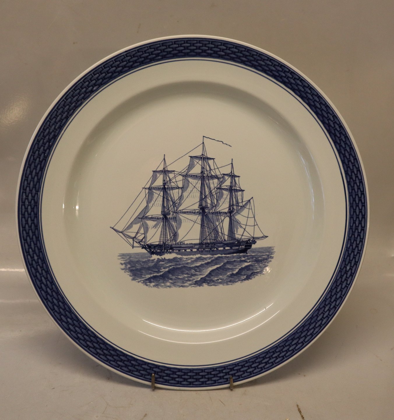 0933-46 Stort rundt fad 34 cm Skibsstellet Blå Royal Copenhagen Aluminia Tranquebar Aluminia Fajance Skibsstellet # 46 I fin og hel stand