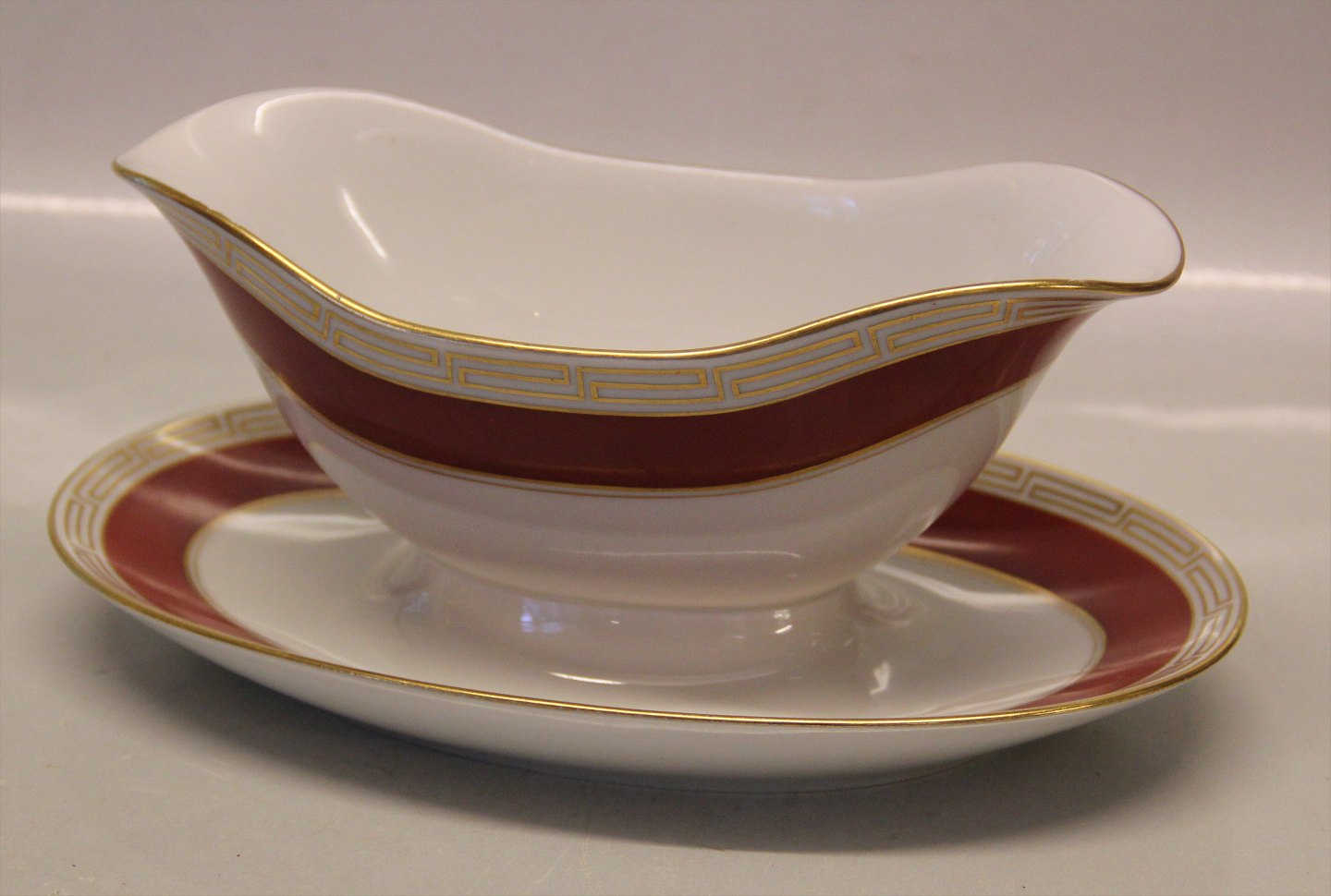 008 Sovseskål på fod 11 x 24 cm Wagner B&G Rustrød fond, åben guld à la grecque bort og guldkant, hvid