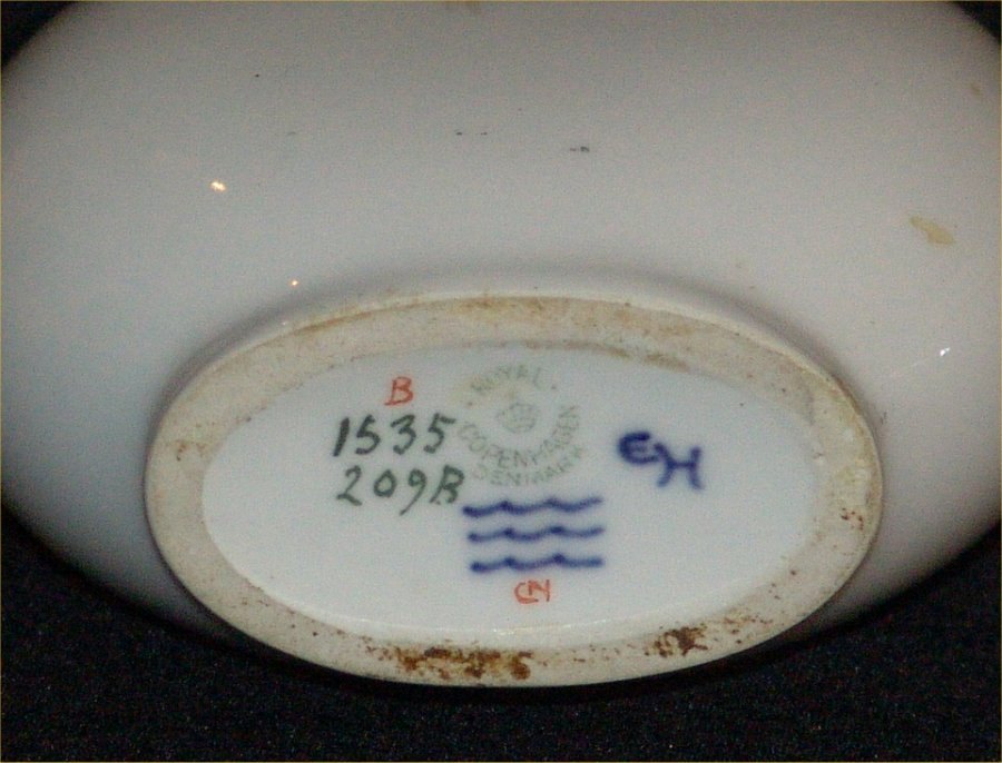 1535-209 b Kgl. Humlebi og blomst Signeret EH 16 x 14 cm Else Hasselriis Kongelig Dansk Porcelæn