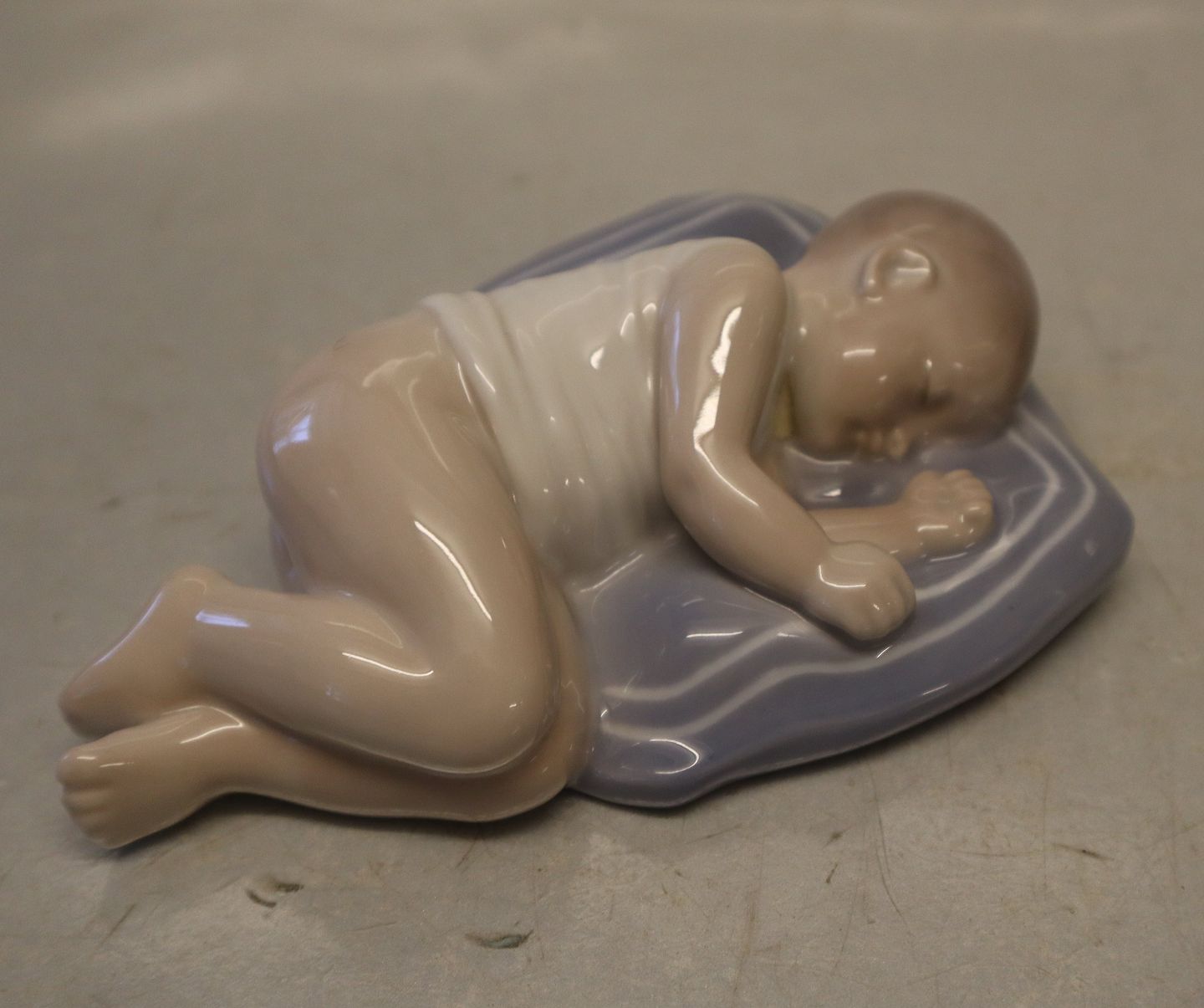 4496 Kgl. Baby sover på pude 4 x 15 x 10 cm Holger Christensen Kongelig Dansk Porcelænsfigur