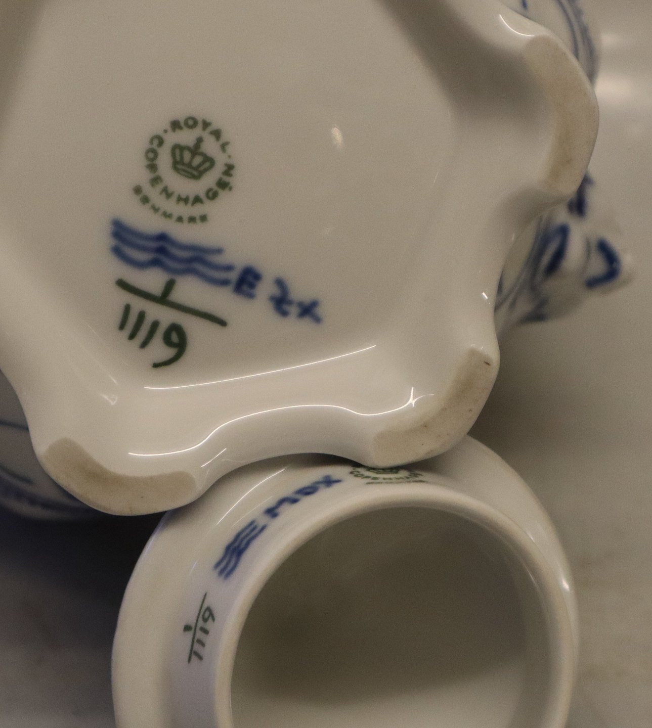 1119-1 Tekande/tepotte 0.96 l Kongelig Dansk Porcelæn Musselmalet Helblonde I fin og hel stand