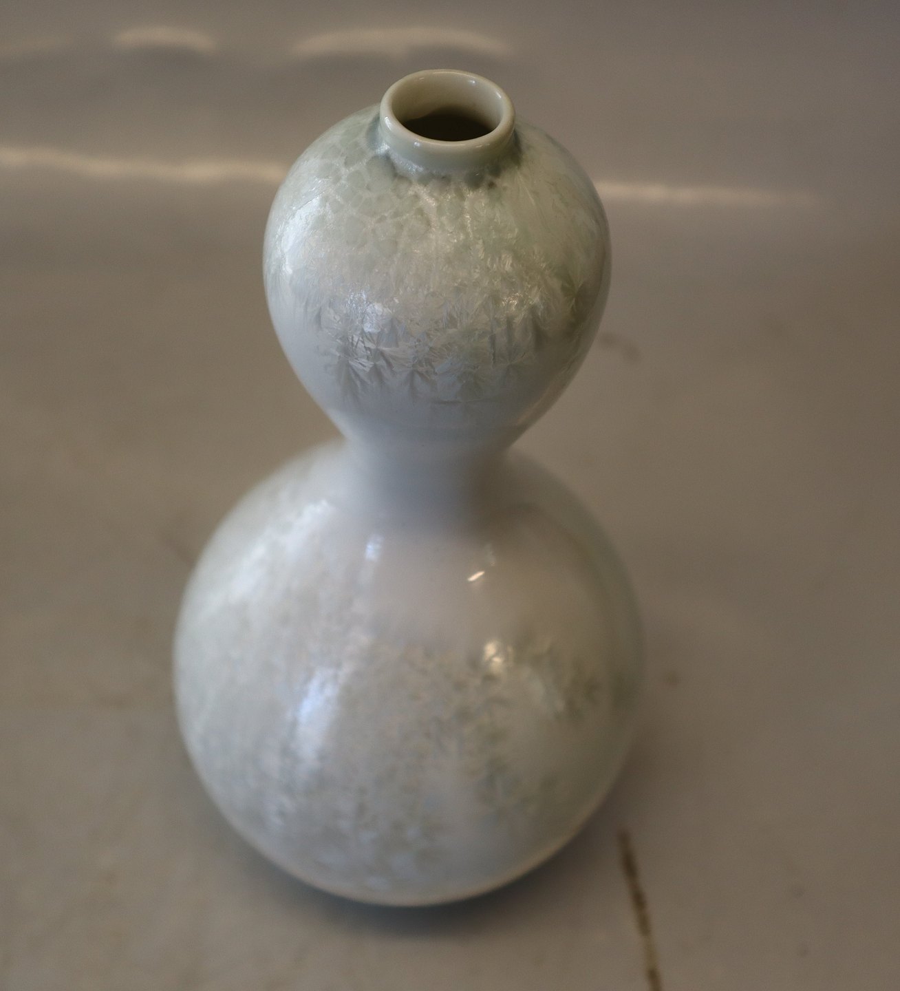 Kgl. F 746 Græskarformet (gourd) vase med krystal glasur 17.8 cm Valdemar Engelhart Kongelig Dansk porcelæn