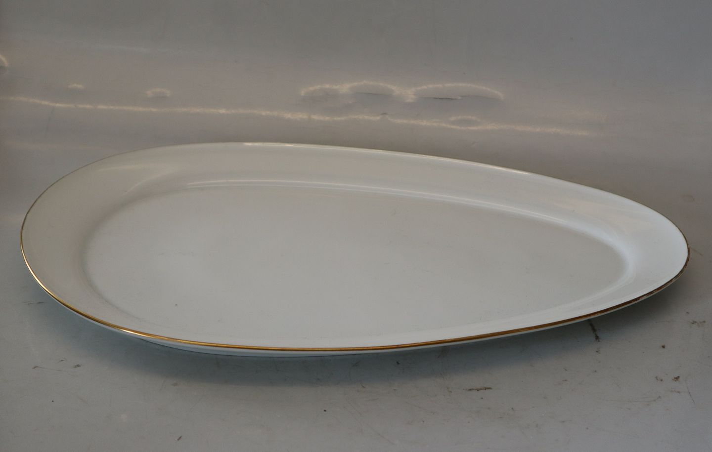 015 Stort ovalt stegefad 39,5 cm (315) Leda: B&G porcelæn: Hvidt porcelæn med guldkant, form 676. I fin og hel stand