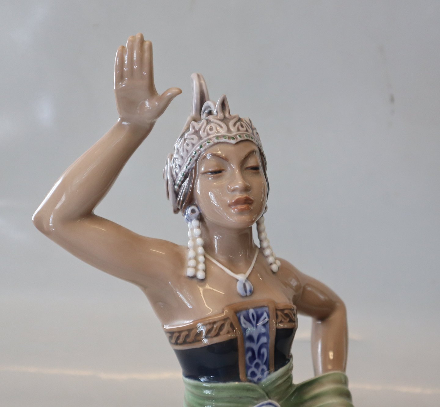 Dahl Jensen Orientalsk figur 1208 Sumatra-danserinde 30,5 cm (DJ). Mærket med kongelig krone og DJ Copenhagen i hel og fin stand.