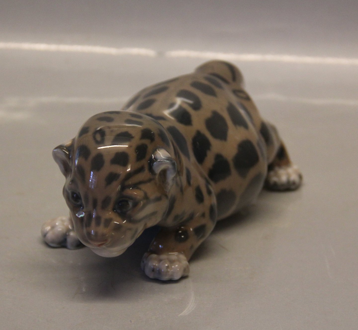 Beskrivelse: Kgl. figur fra Royal Copenhagen 4659 Kgl. Jaguar unge JG 7 x 21 cm Design Jeanne Grut I hel og fin stand