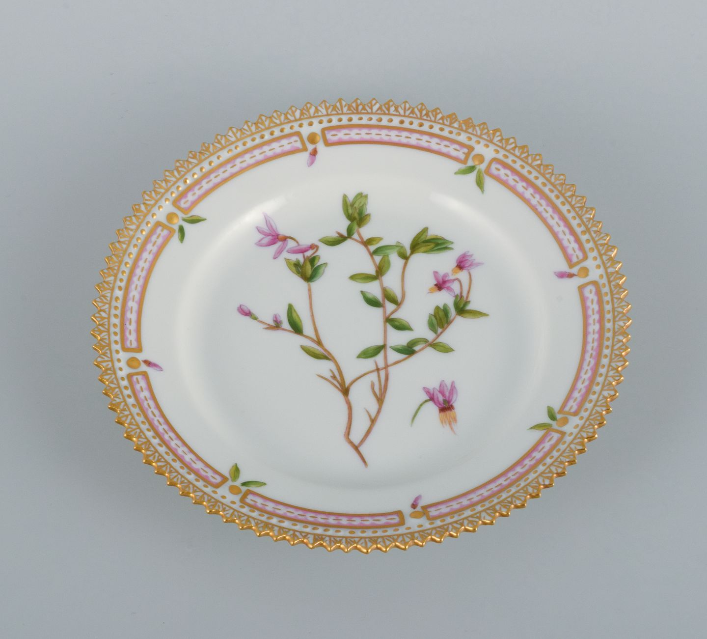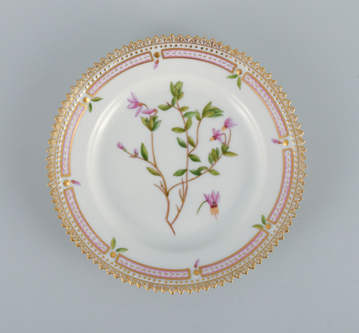 Royal Copenhagen Flora Danica side plate in hand-painted porcelain with flowers and gold decoration. Model number 20/3552. In perfect condition. First factory quality. Stamped. Dimensions: D 14.0 x H 2.0 cm.