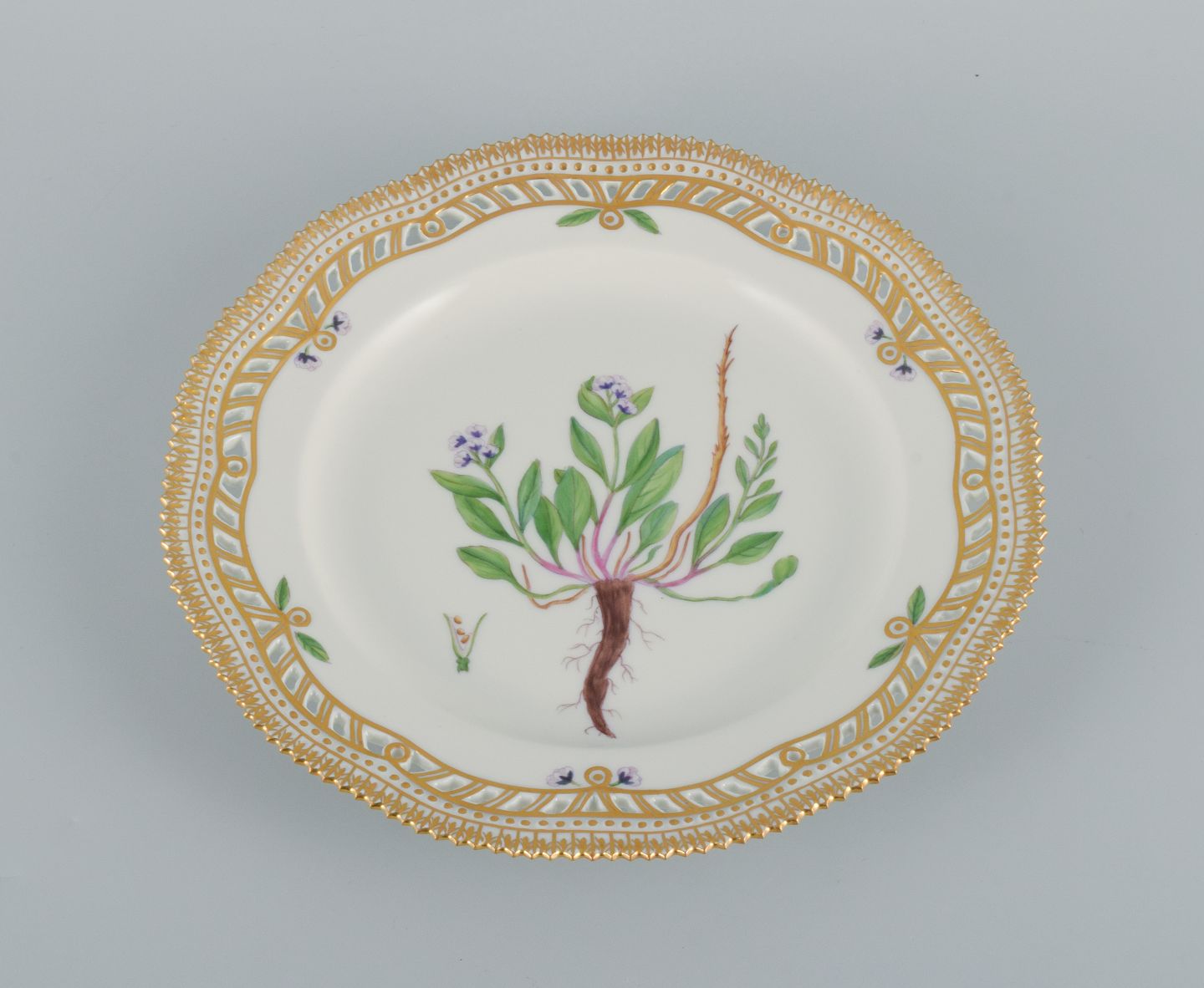 Royal Copenhagen Flora Danica openwork plate in hand-painted porcelain with flowers and gold decoration. Model number 20/3554. In perfect condition. First factory quality. Stamped. Diameter: 23 cm.