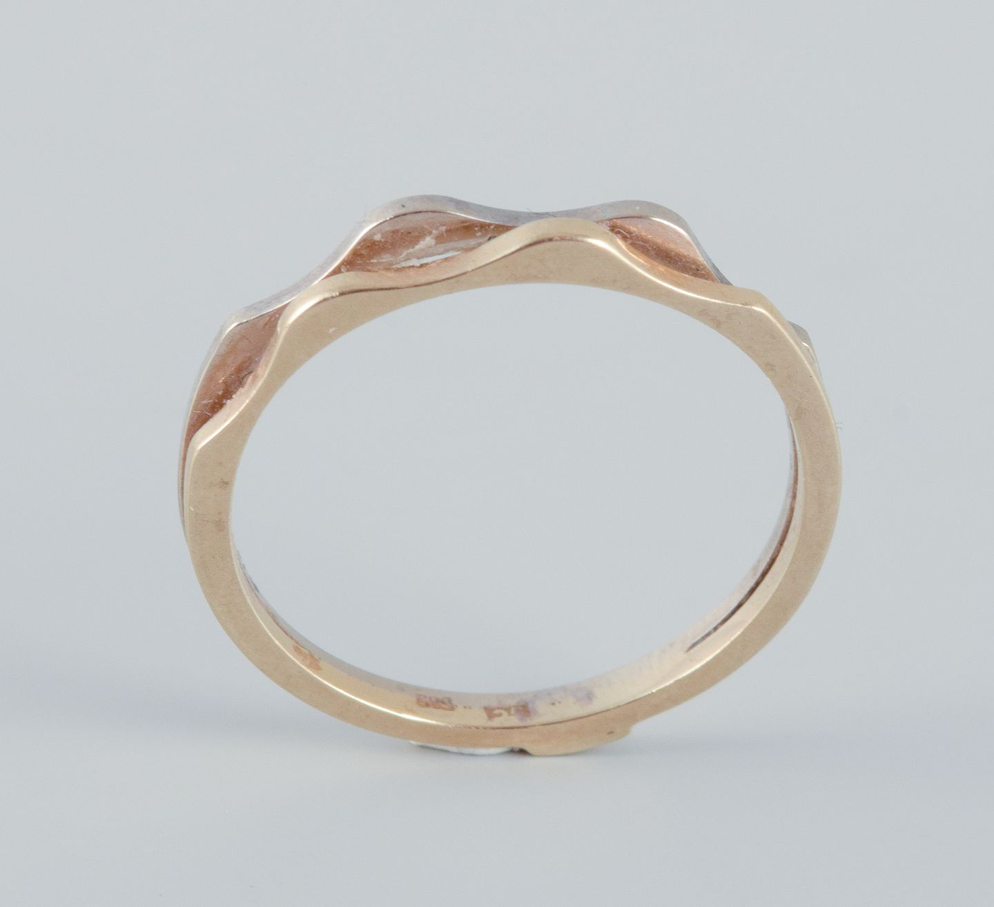 14 karat gold ring in white gold and rose gold. Modernist design. Mid-20th century. Makers mark: SC. In excellent condition. Ring size: 18 mm. (US approx. 8)