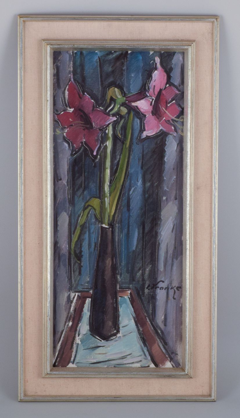 Ivan Franke, Swedish artist. Oil on canvas. Modernist still life with amaryllis.