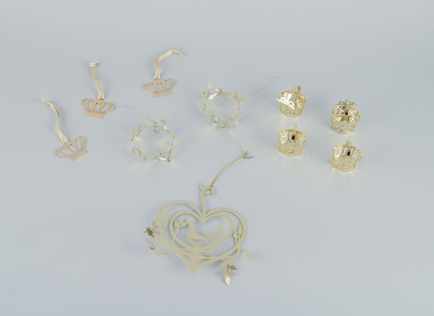 Royal Copenhagen "Royal Christmas". Set of ten brass Christmas ornaments for hanging on the Christmas tree and in the window.