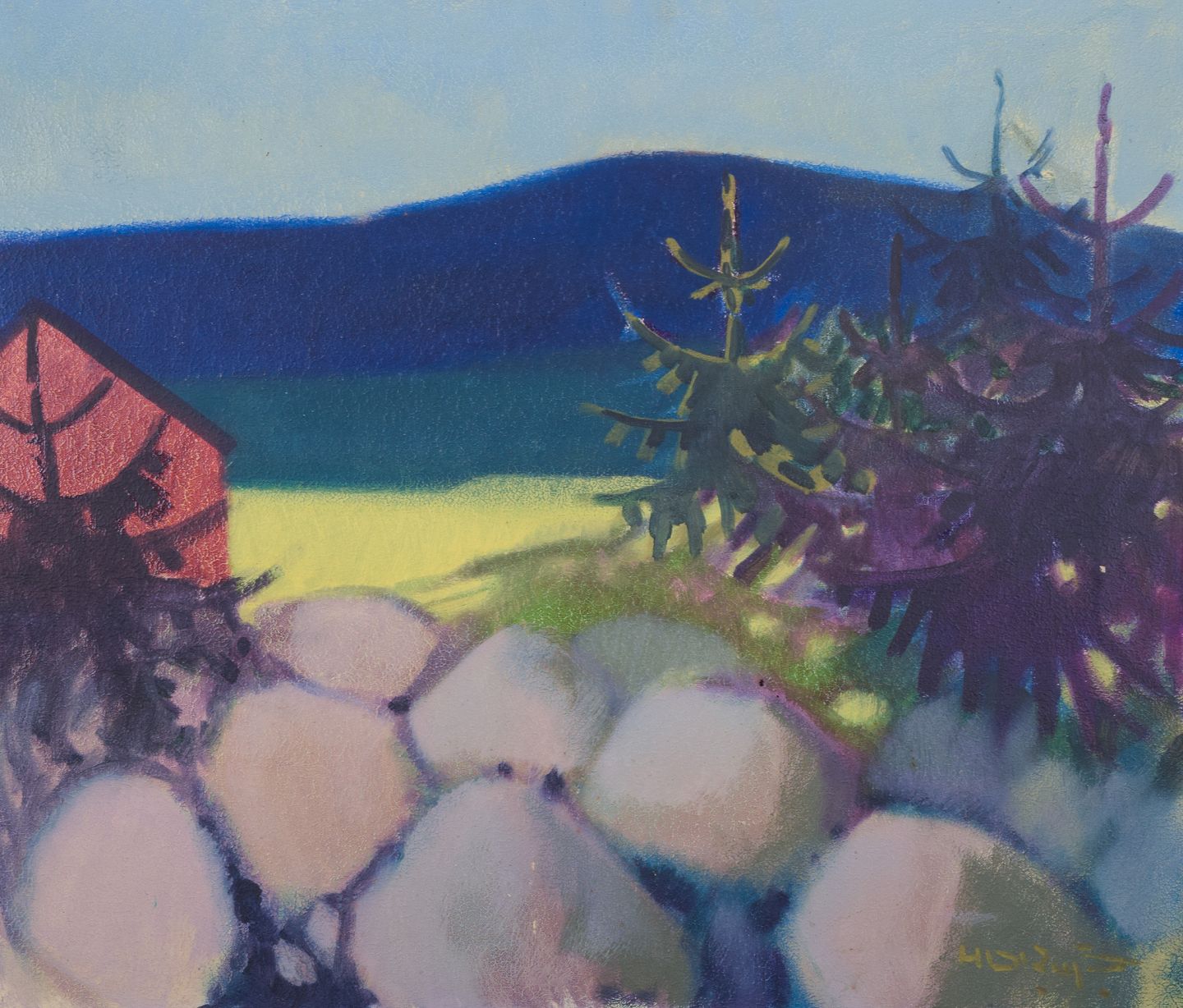Knud Horup (1926-1973), Danish artist, oil on canvas. House in landscape.