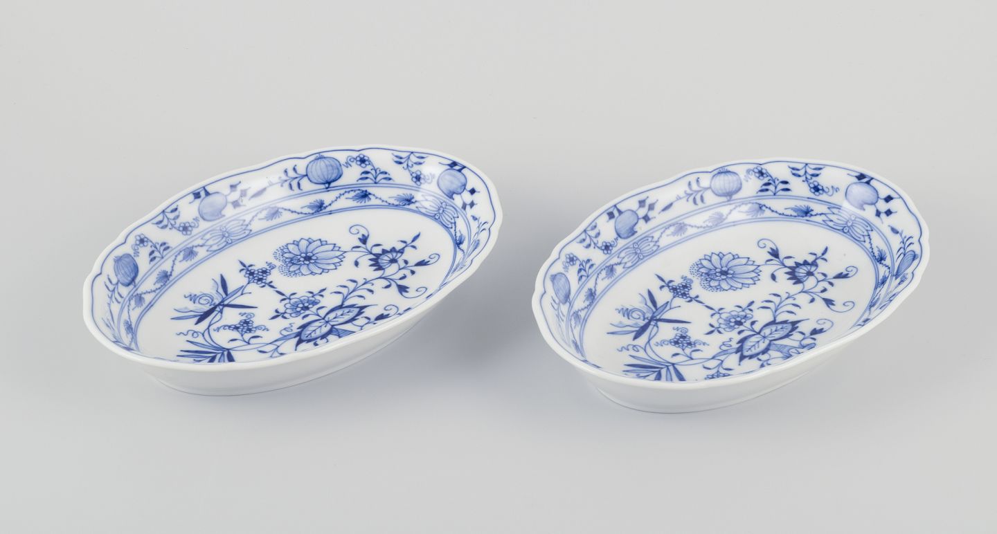 Meissen, Germany. Two oval Blue Onion pattern porcelain bowls.