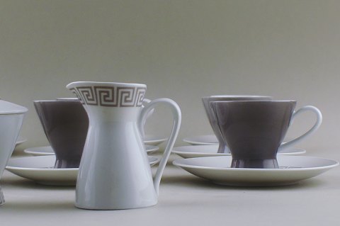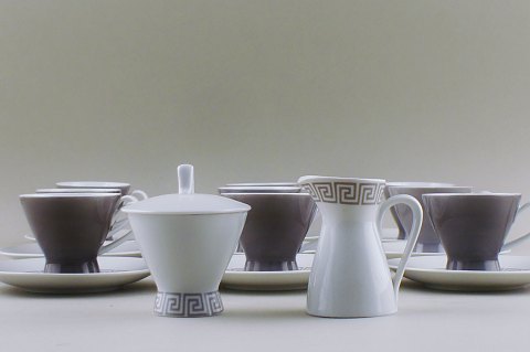 Rosenthal mocca-service, 9 sæt, mocca-kopper, underkopper, flødekande og sukkerskål. Smukt moderne kaffeservice i mørkegråt og hvidt.