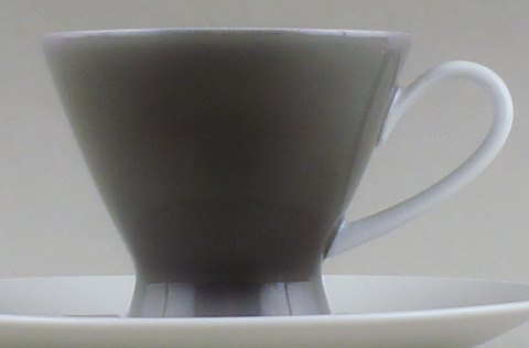 I god stand. Størrelse : moccakop 6 cm. høj. Underkop 13 cm. i diameter.