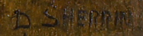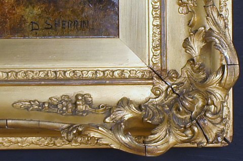 Daniel Sherrin (f. 1868, d. 1940) Skotsk landskab. Sign. D. Sherrin. Olie på lærred. 51 x 76. Rammen er 12 cm. bred. I god stand, enkelte krakkeleringer. Smuk, bred guldramme med enkelte små afslag. Priseksempel : Et maleri af Daniel Sherrin, blev solgt hos Tennants i 2003 for $ 9,381.