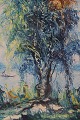 Asiatisk kunstner, utydeligt signeret. Olie på plade. Sent 1900-tallet. 38x48 cm. I god stand. Rammen er 2 cm. bred og i god stand.