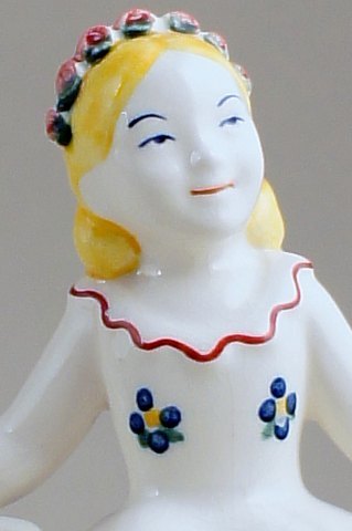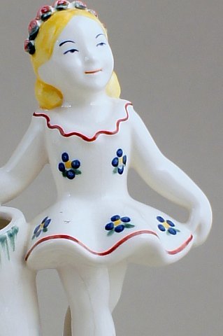 Her tilbydes en sjælden Royal Copenhagen (Aluminia) fajance figur af en ballerina. Børnehjælpsdagen 1952. 17 cm. høj. I god stand.