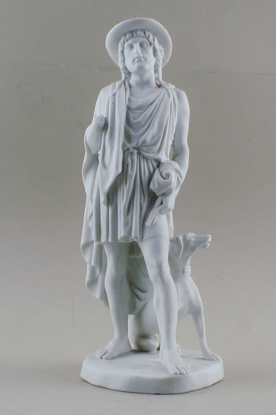 Antik B&G (Bing & Grøndahl) biscuit figur, sjælden model. God stand, med defekt arm. 25 cm. høj.