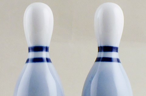 Rare pair of B&G (Bing & Grondahl) bowling pins, number 6132. 20 cm. high. Factory first, in good condition.