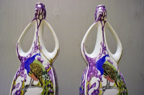 Et par Arnhem "Ram" porcelænsvaser, Holland, tidligt 1900 tallet. Stemplet. I god stand. Måler 42.5 cm.