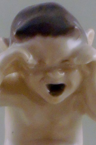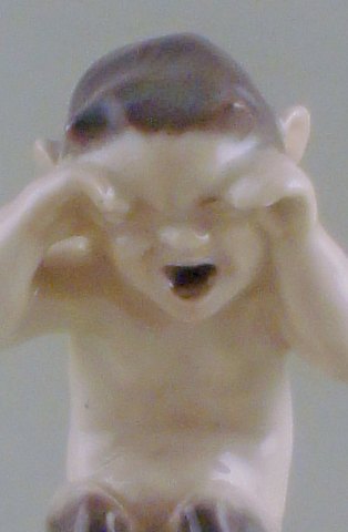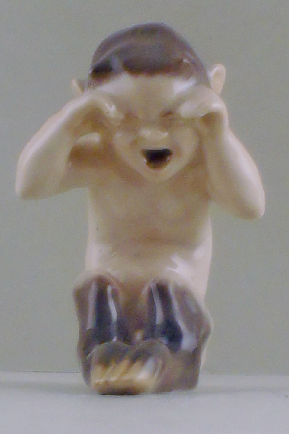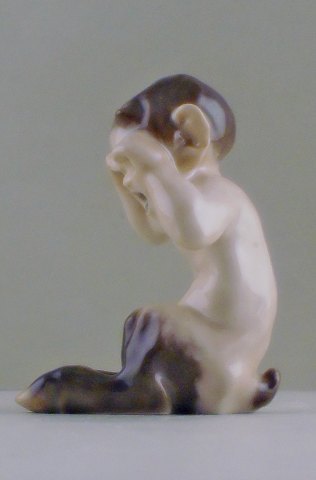 Rare Royal Copenhagen figurine, crying Faun # 1061. Designed by Knud Kyhn in 1909. In good condition, factory first. Measures 11cm x 9cm.
