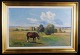 Niels Christiansen: Hest på eng. Signeret N. Chr. Olie på lærred. Måler 70 x 45 cm. I god stand.