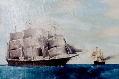 Olie på lærred, marinemaleri, ubekendt kunstner, ca. 1900. Usigneret. Måler 84 x 40 cm. I god stand.