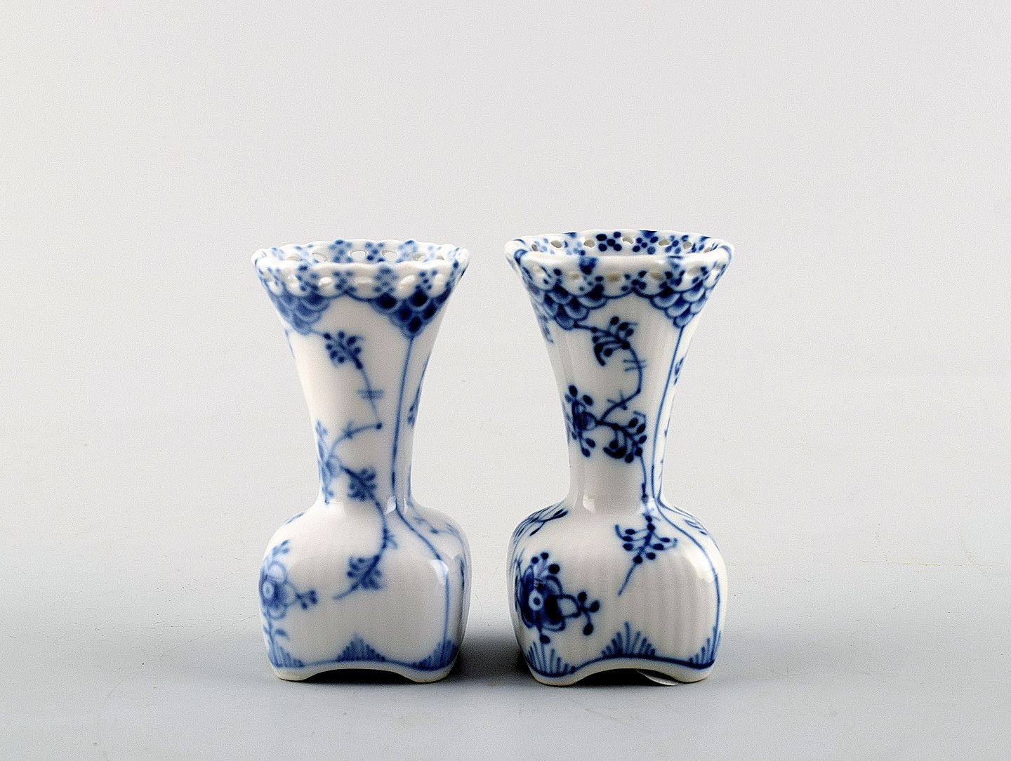 Royal Copenhagen musselmalet helblonde 2 vaser. Nummer: 1/1161. 1. sortering, i perfekt stand. Størrelse: 7.5 cm. høje.