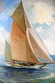 Ubekendt kunstner, midt 20 årh. Sejlskib med hvide sejl. Olie på plade. I flot stand. Usigneret. Måler 55 x 77 cm. Rammen måler 5 cm.