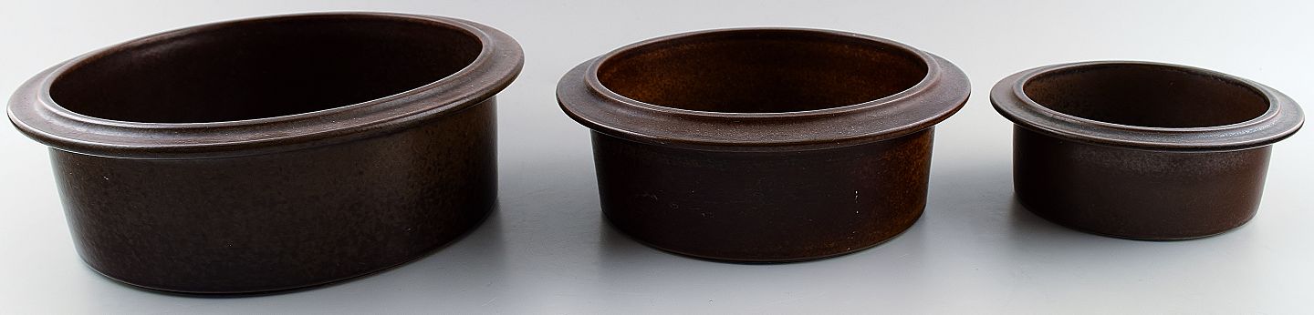 Arabia Ruska stentøj. Finsk design, 1960/70´erne. 3 skåle. Største skål måler 22,5 x 7 cm. I perfekt stand.