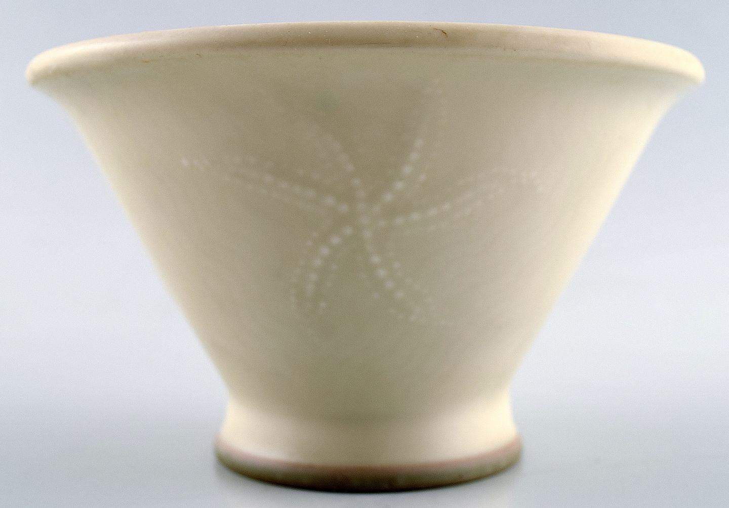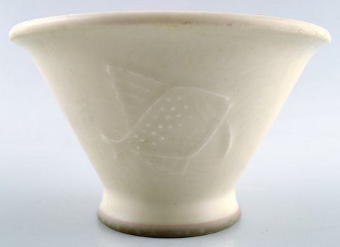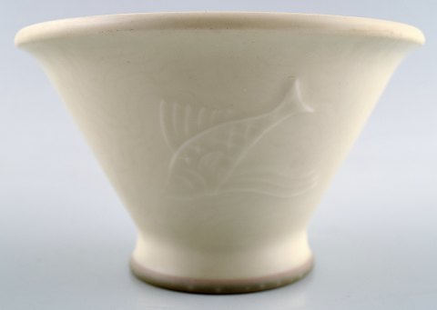 Art deco vase af porcelæn, B&G, Bing & Grøndahl. Dekoreret med fisk, cremefarvet. Måler. 12,5 x 8 cm. God stand. 1. sortering.