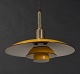 Poul Henningsen for Louis Poulsen, PH 3½/2 pendel med fatningshus af messing / metal, sign. PH-2 Patented, trådbensstel monteret m/ skærmsæt af gulbemalet metal.