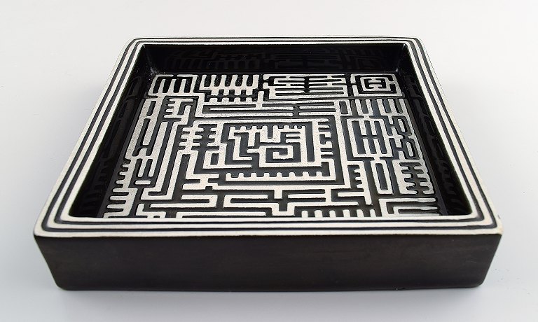 Stig Lindberg, Gustavsberg, Domino fad i keramik. 1950´erne. Måler : 15 cm. Dybde : 2,5 cm. Stemplet. I perfekt stand.