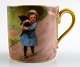Dresden dukkekop/mokkakop med tilhørende underkop, håndmalet porcelæn, guldbelagt. Lille pige med kat på landevej. Måler : kop 9 cm. x 5 cm. Underkop 9 cm. Stemplet. Tidligt 1900-tallet.