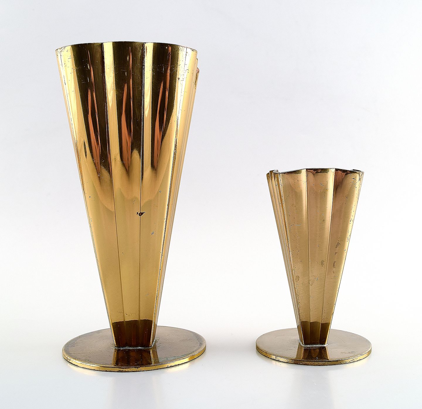 To vaser i messing, Ystad metall. Største vase 16.5 cm. høj. God stand. Stemplet.