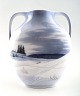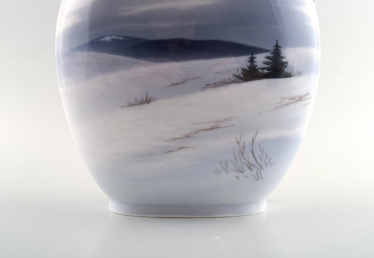 Royal Copenhagen art nouveau vase dekoreret med vinterlandskab. Sjælden form. Måler 14,5 x 17,5 cm. Stemplet. 2. sortering, i perfekt stand.