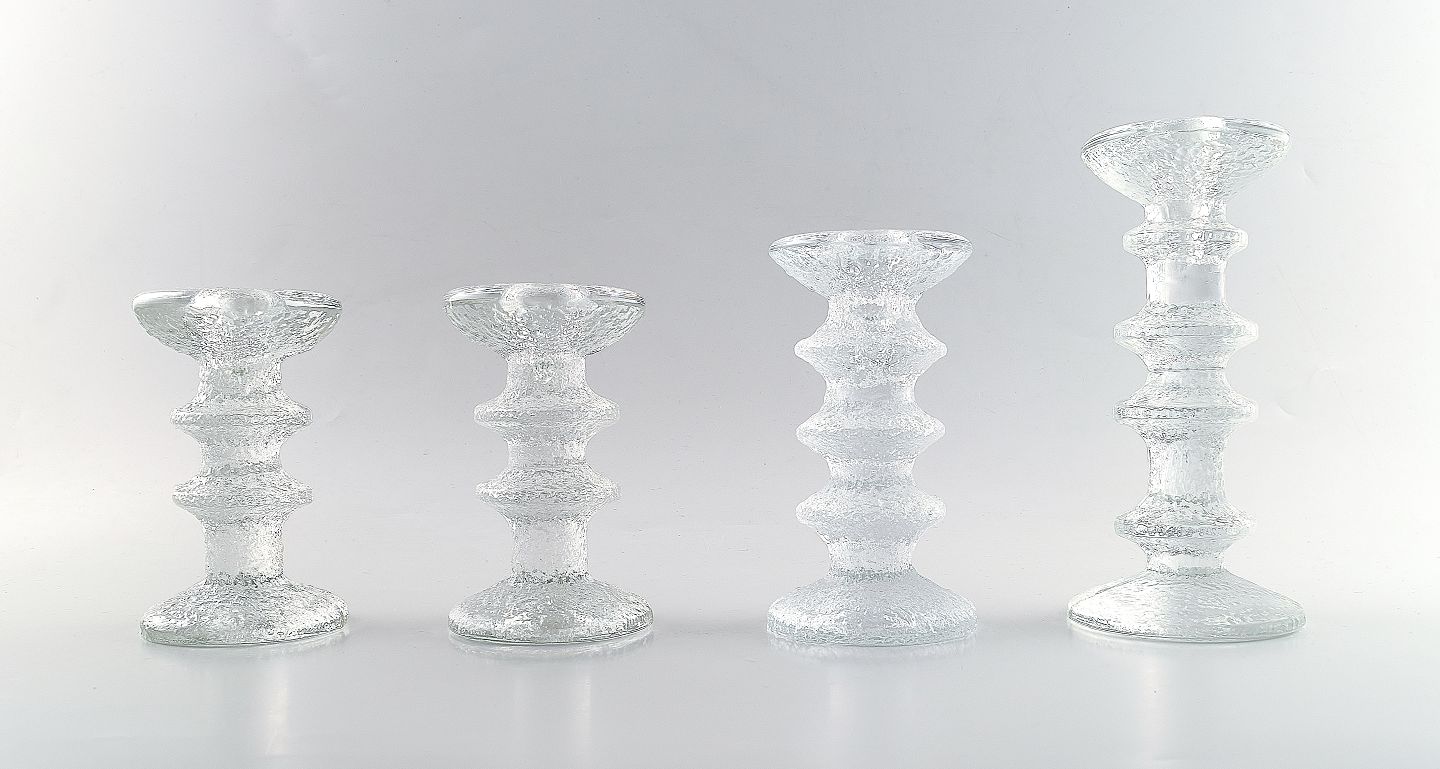 4 Iittala Festiva lysestager, Design: Timo Sarpaneva. Måler : 12,5-18 cm. I perfekt stand. Ustemplet.