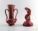 Samling 'Rød Rubin' af keramik med rød glasur med guldkant, fremstillet hos Upsala-Ekeby, Gefle. Design Arthur Percy.