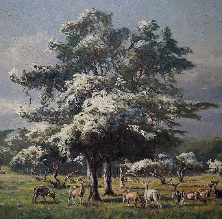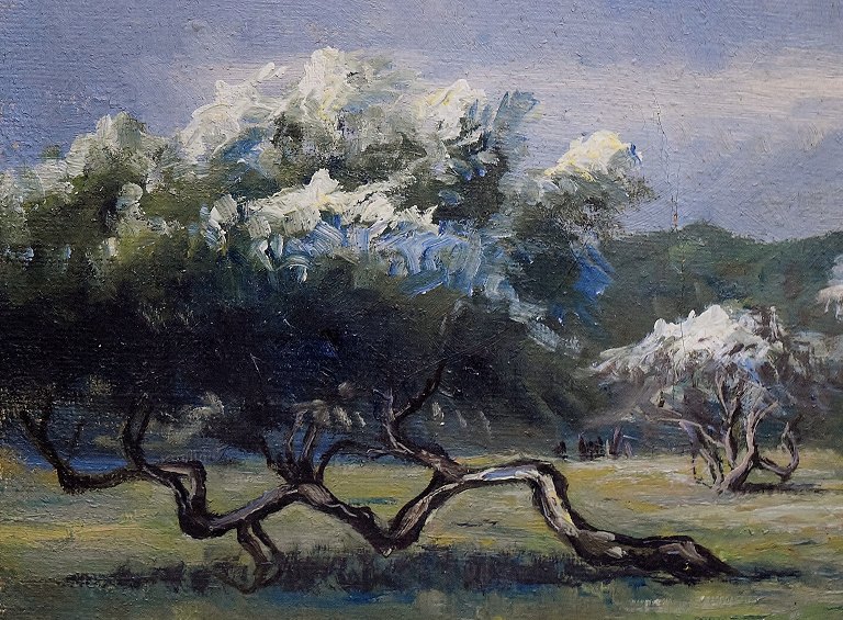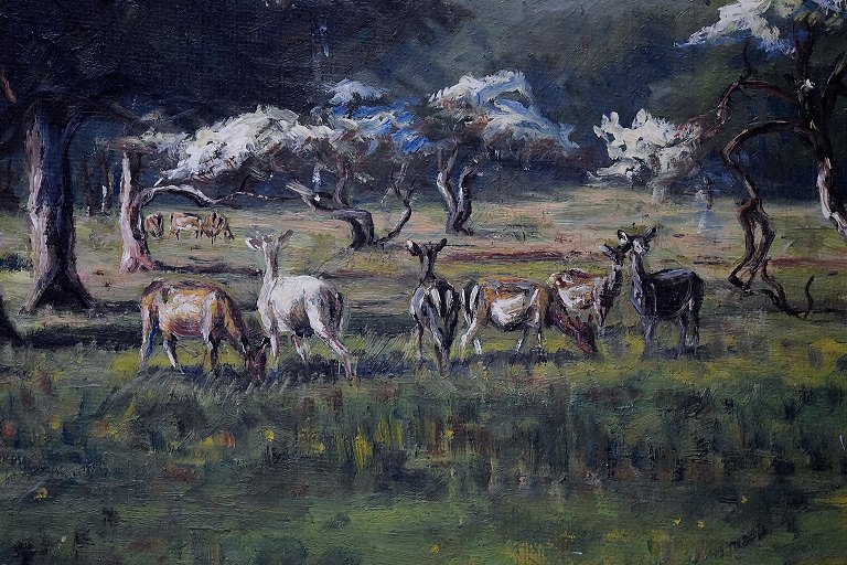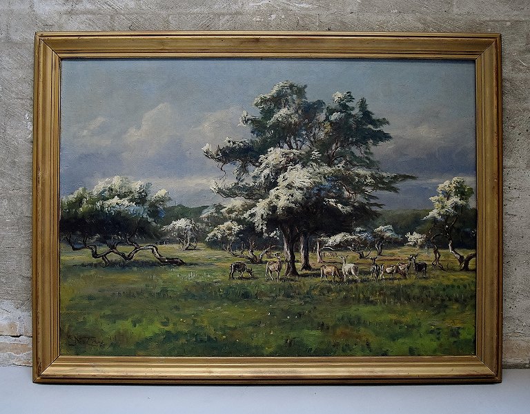 Christiansen, Niels Peter (1873 - 1960) Denmark. View from the Royal Deer Park, Copenhagen. Oil on canvas. Signed in monogram. Measures (ex. the frame) 66 x 92 cm. The frame measures 5 cm.