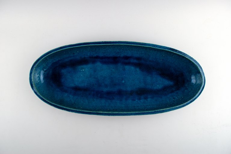Kähler, HAK, kolossalt glaseret stentøjsfad/bakke, 1960'erne. Designet af Nils Kähler. Turkis glasur. Måler 49 cm. 6 cm. højt. Stemplet. I perfekt stand.