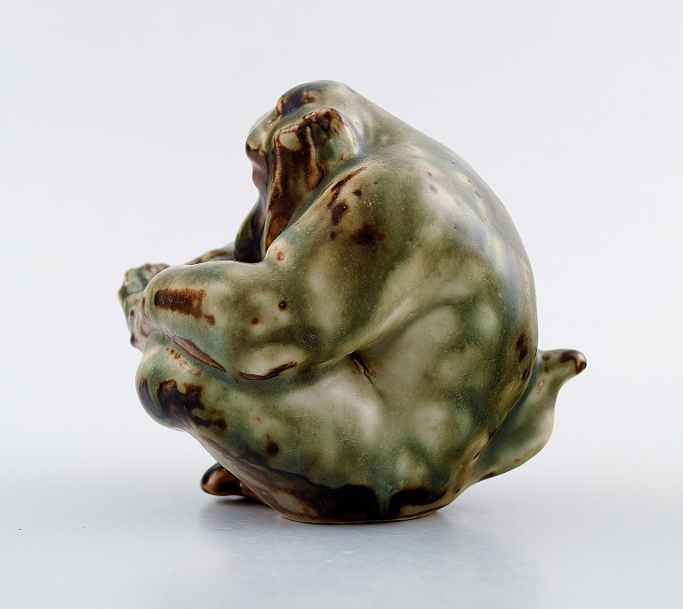 Knud Kyhn for Royal Copenhagen, stentøjsfigur, abe. Lys glasur. 1. sortering. Modelnummer 20211. Måler 8 cm. x 8 cm. Perfekt stand.