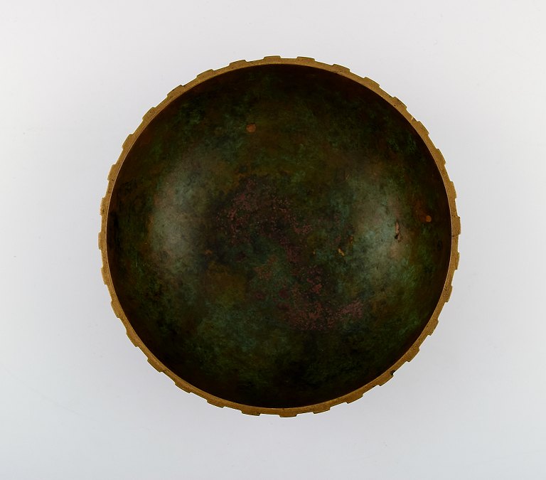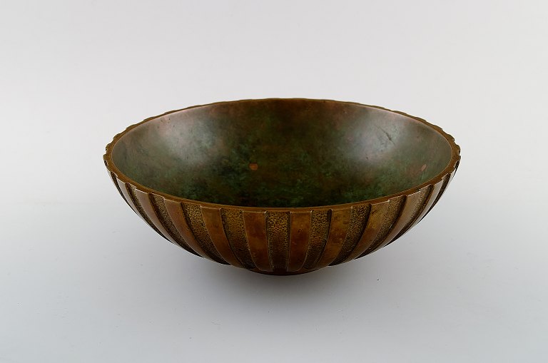 Stor Tinos art deco skål i bronze. Danmark, 1940´erne. Stemplet. I flot stand. 22,5 cm. x 9 cm.
