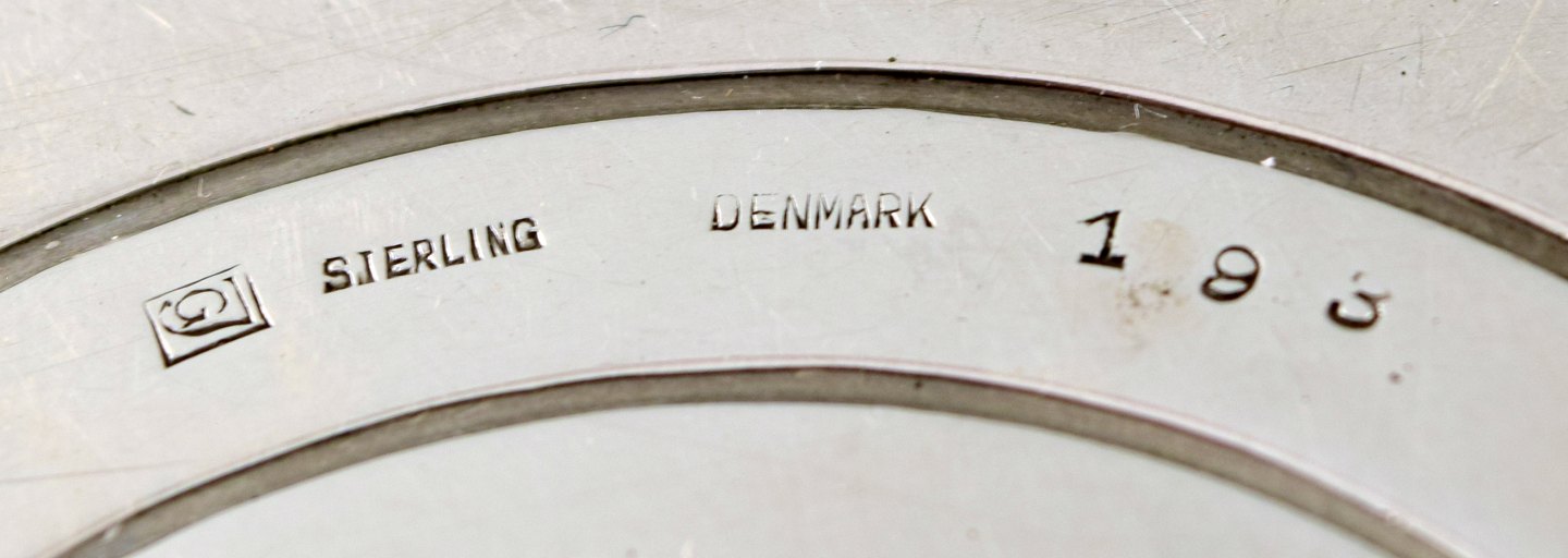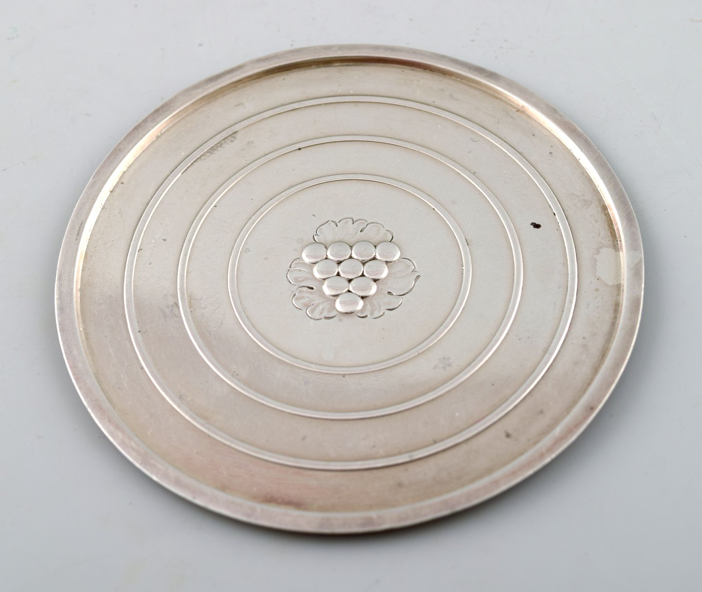 Georg Jensen: To glasbakker af sterlingsølv. Indvendigt ciseleret med vindrueklase. Georg Jensen 1933-1944. Dessin 193. Diameter 6,5 cm. I god stand.